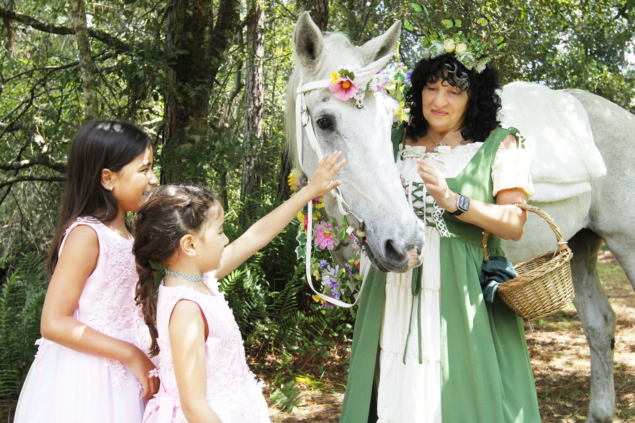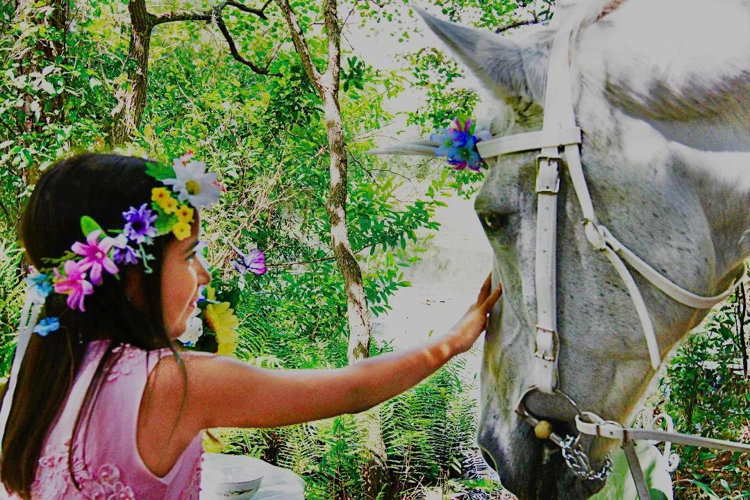 Capture the magic! Your child is styled in a beautiful rainbow gown and pampered with sparkles for an exclusive 30 minute photoshoot with a live, gentle unicorn. We will create breathtaking, treasured portraits you’ll cherish forever.