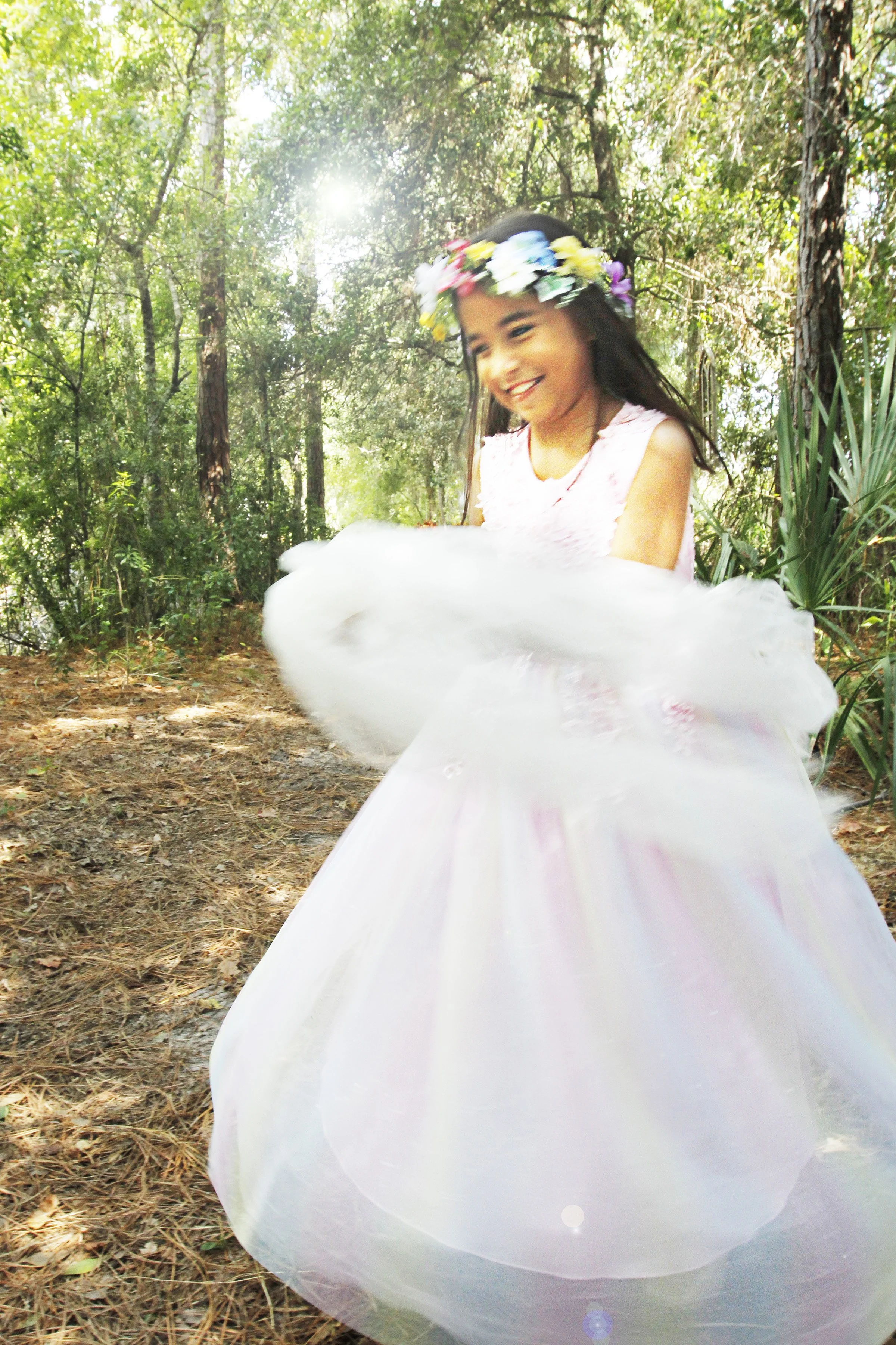 This gorgeous full length dress is available in multiple children’s sizes 4 -16 that can be worn with crinoline, hats, gloves or flower crowns.